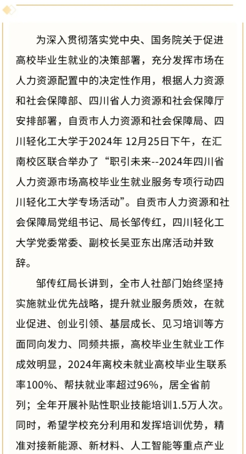 重点关注 | 职引未来——2024年四川省人力资源市场高校毕业生就业服务专项行动四川轻化工大学专场活动圆满举行