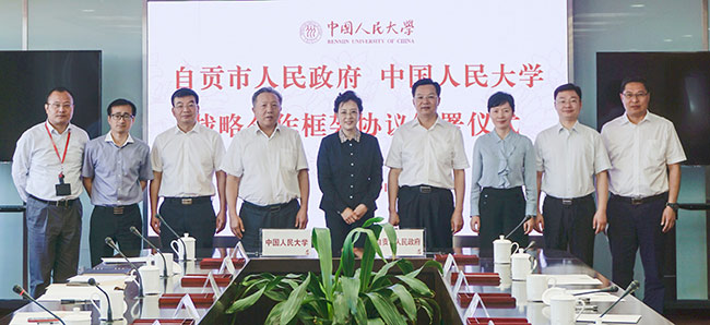 签署仪式上,李刚代表市委市政府对中国人民大学长期以来给予自贡发展的关心、支持和帮助表示感谢,并介绍了我市经济社会发展情况。他说,当前自贡正按照党的十九大精神和四川省委转型发展、创新发展、跨越发展的战略部署,加快建设全国老工业城市转型升级示范区,加快建设西部内陆融入“一带一路”先行区,加快建设独具特色的国际文化旅游目的地,努力让这座老工业城市焕发出新的时代风采。中国人民大学是我国人文社会科学领域的一面旗帜,培养了大批学术泰斗、治国栋梁和各行业的领军人才。同时,中国人民大学与自贡渊源深厚。老一辈无产阶级革命家、教育家、中国人民大学首任校长吴玉章,是近现代自贡籍人士的杰出代表。吴老生前始终牵挂家乡发展,倾注了大量心血,这是我们建设好、发展好自贡的动力源泉。当前,我市正处于转型突破的关键期,迫切希望能与中国人民大学这样的一流学府开展深度合作,借助中国人民大学在金融、科技、人才等方面的优势,在干部教育培训、持久智力支持、文化旅游合作、人才交流互动等方面获得大力支持,为自贡的振兴发展注入新的强劲动力。