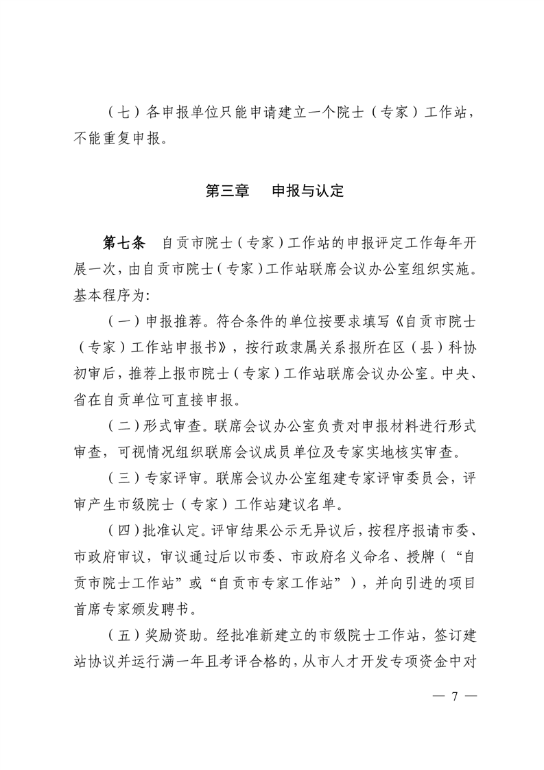 中共自贡市委组织部、自贡市科学技术协会关于印发《自贡市院士(专家)工作站建站资助资金实施细则》的通知