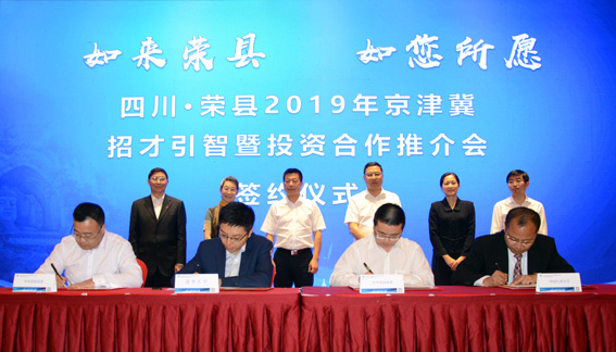 5月19日,荣县在北京举行京津冀招才引智暨投资合作推介会,与清华大学、中国人民大学、中国医药教育协会、中皓新能源股份有限公司等签约12个合作项目,总投资额26.63亿元,项目涉及校地合作、中医药产业和新能源汽车集中式充电站等领域。市委常委、副市长杨智艳出席并讲话。县委书记韩明祝致辞。县人大常委会主任宋成文,县委常委、组织部长胡伟峰,副县长胡爱华等参加推介会。