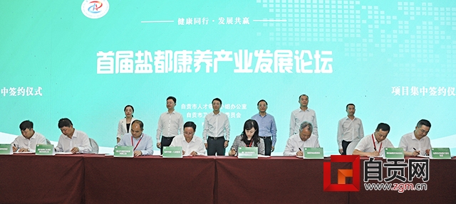 会议还举行了康养产业项目集中签约仪式。签约内容涉及蕾娜范养老集团与汇东股份有限公司签署的“养老康复中心项目”,四川大家医学检验有限公司与自贡市第一人民医院签署的“分子检验试验”项目,厦门燕来福制药有限公司与自贡市中医医院签署的“智慧煎药中心”项目等9个签约项目,投资金额34亿元。谭豹、陈张铭、尹隆等见证签约。