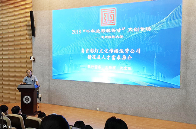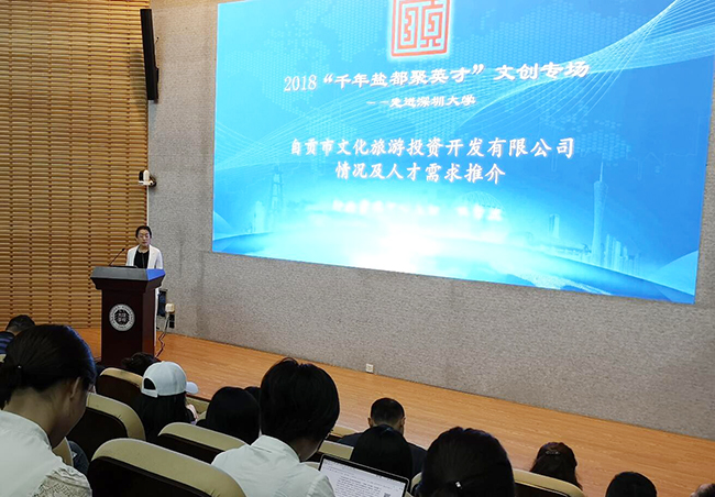 为推动与高校的交流合作,吸引人才、技术、资本等要素向自贡转移,10月25日,我市在深圳大学举办2018年“千年盐都聚英才”文创专场招才引智活动。市级相关部门、区县政府和文体广新局领导、自贡市文化企事业单位代表,以及深圳大学师生共计120余人参加本次活动。