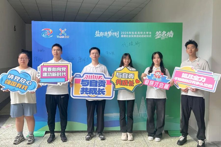 7月23日,2025年“盐都逐梦计划”知名高校大学生暑期社会实践活动启动仪式在四川轻化工大学汇东校区举行,来自清华大学、同济大学等知名高校的近80名学生代表参加启动仪式。本次活动由市委组织部(市委人才办)、团市委主办,市商务局、市文化广电旅游局协办,旨在通过政策引导与实践体验,让高校学子深入了解自贡、扎根自贡,为城市发展注入青春动能。