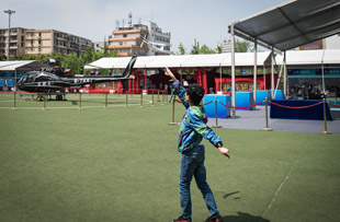 小学生亲手制做飞机模型上天
