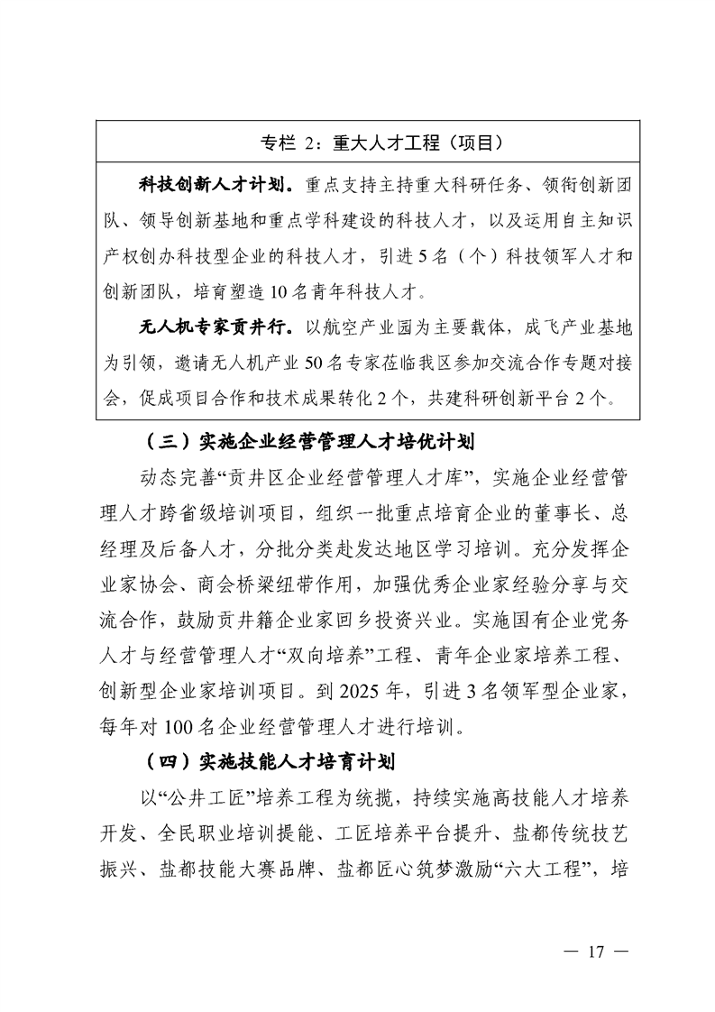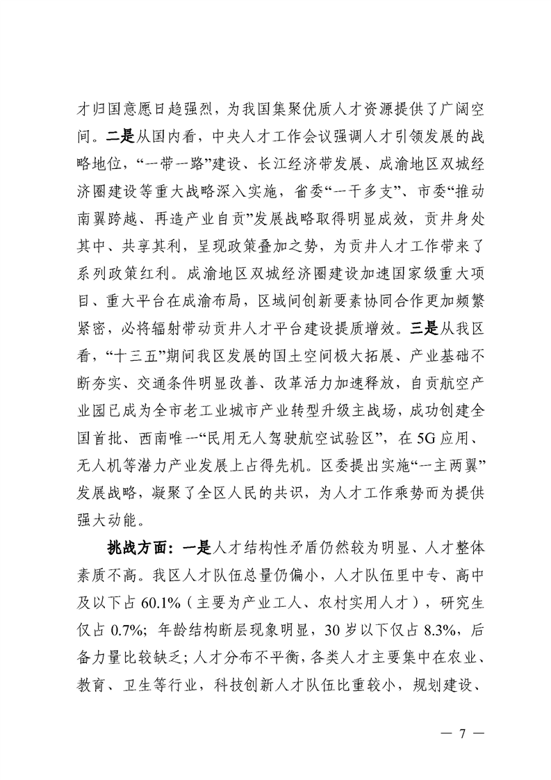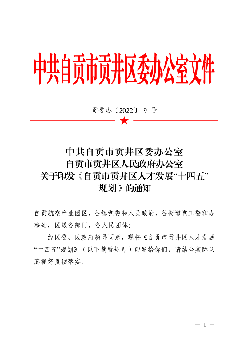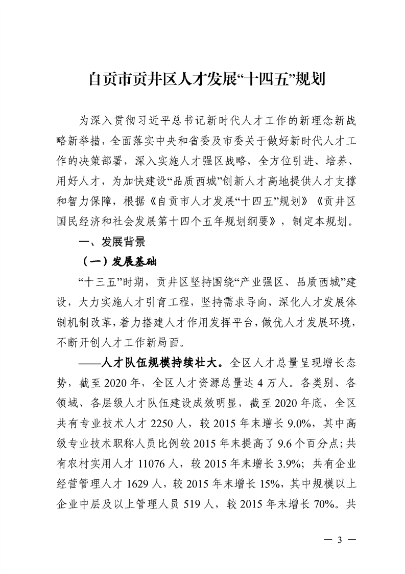 中共自贡市贡井区委办公室、自贡市贡井区人民政府办公室关于印发《自贡市贡井区人才发展“十四五”规划》的通知
