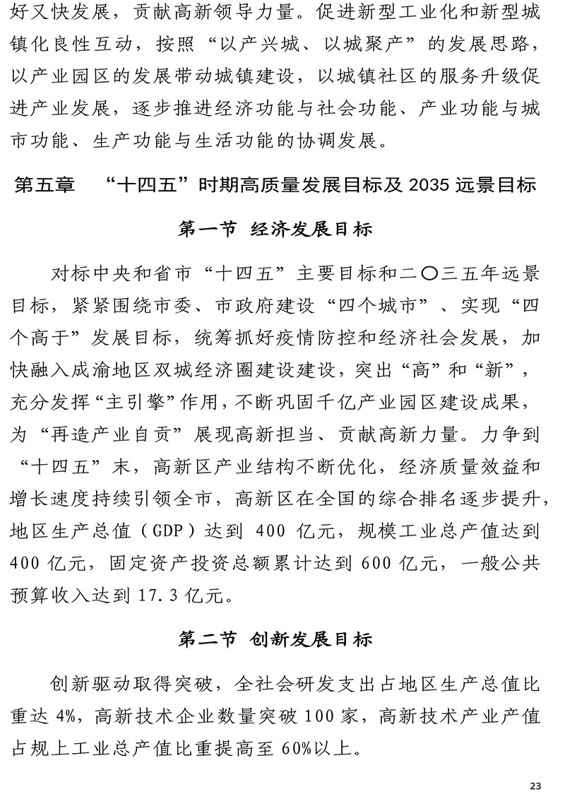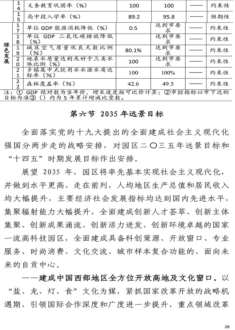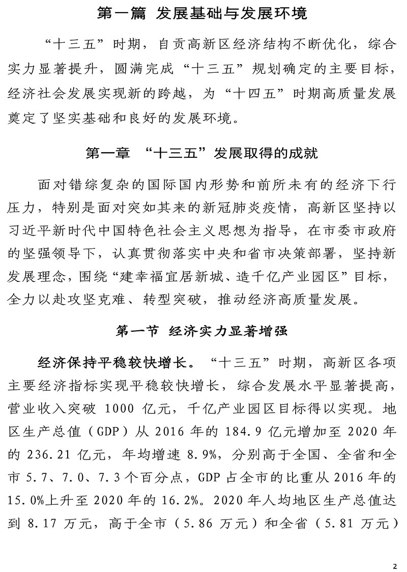 自贡高新技术产业开发区国民经济和社会发展第十四个五年规划和二〇三五年远景目标纲要