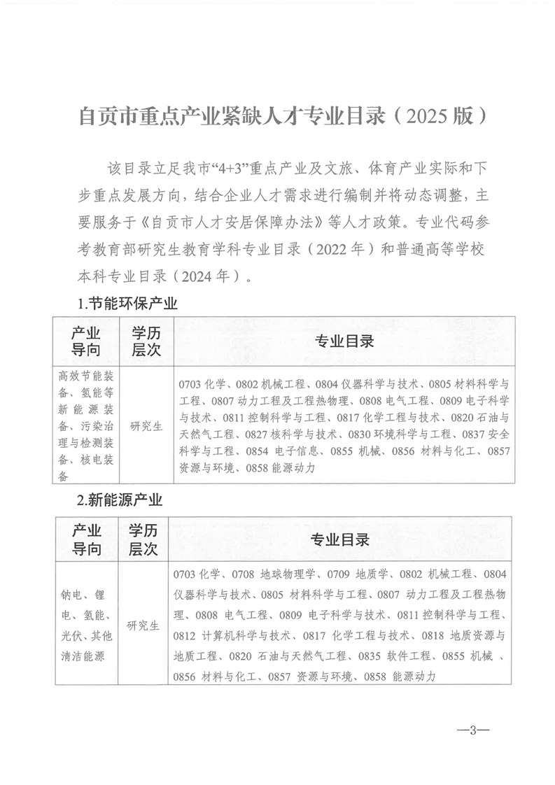 自贡市重点产业紧缺人才专业目录