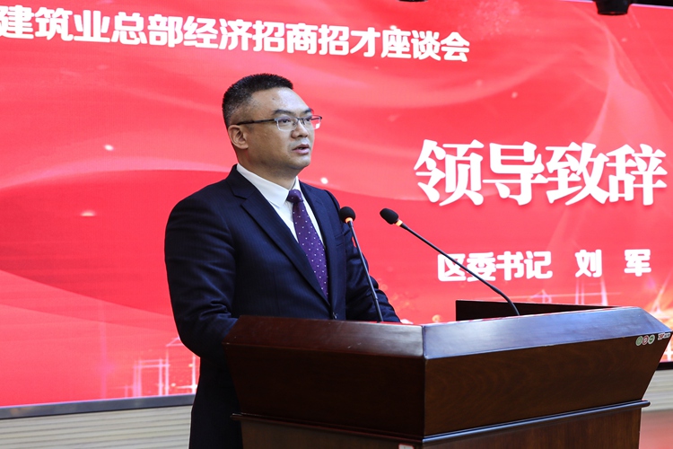 刘军在致辞中代表区委、区政府对各位嘉宾的到来表示诚挚欢迎,并向关心支持沿滩发展的建筑业企业家表示衷心感谢!他指出,近年来,沿滩区建筑业产值屡创历史新高,一个个振奋人心的数据背后,凝聚着各位建筑业企业扎根沿滩、服务发展的汗水、心血。沿滩当前正朝着建设全省县域经济先进区、全省乡村振兴先进区、全省产城融合品质城勇毅前行,涌动着创业热潮,蕴含着诸多商机。沿滩区委、区政府将坚定打造建筑业的“大总部”,在政策扶持、要素保障、优质服务上再加力,将建筑企业团结在一起、把优势产业链接在一起,希望各位企业家能够积极响应“招商招才”号召,与区委、区政府携手发展、合作共赢,以建筑业高质量发展推动沿滩经济高质量发展!