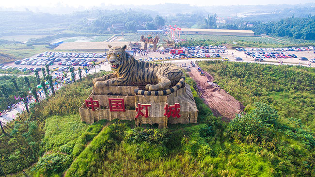 彩灯之乡文化创意产业园坐落于自贡市沿滩区刘山乡,占地面积1200余亩,以产业区域化、集群化发展的思路,整合一产、二产、三产,包括“彩灯生产基地、匠人村、康老中心、葡萄园、乡村童事游乐园”等20余个子项目,形成三产联动。自2016年以来,已举办了2届草雕节。