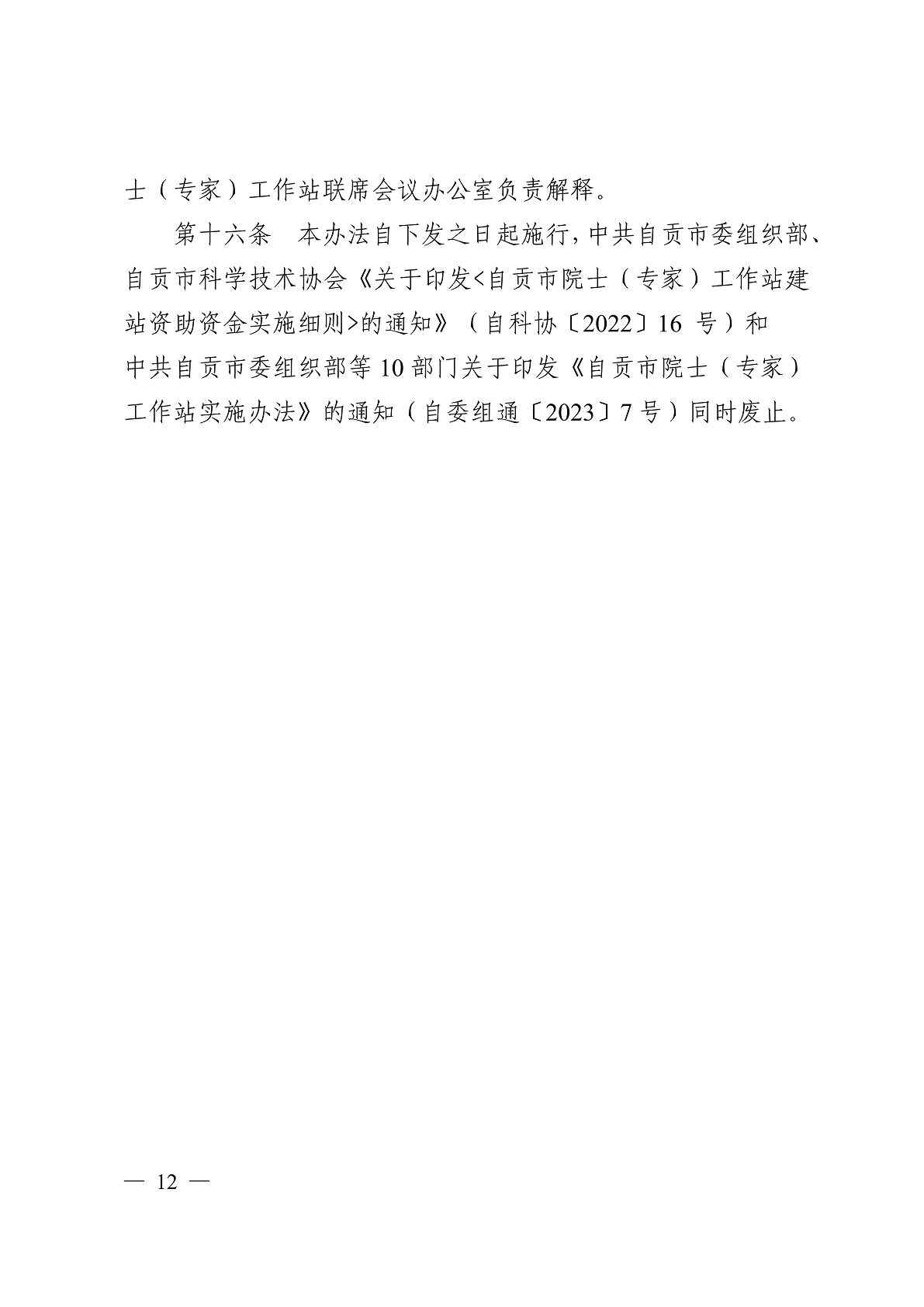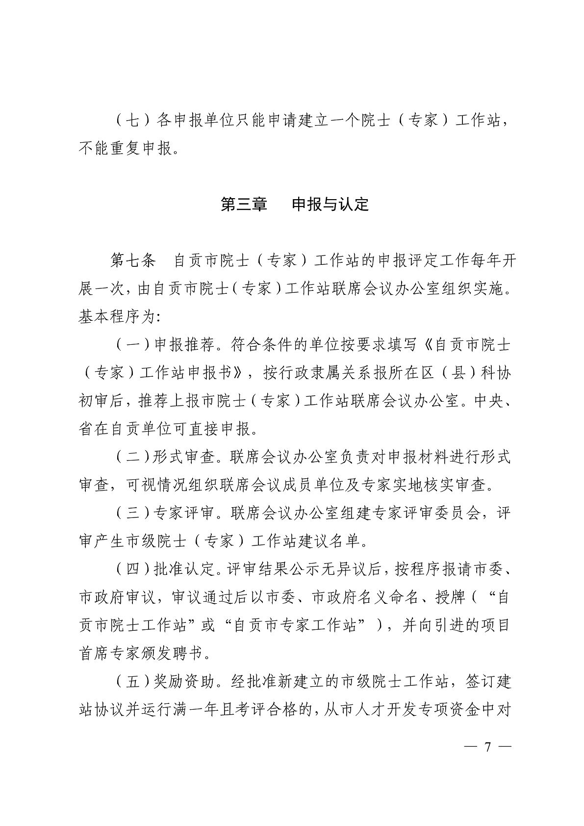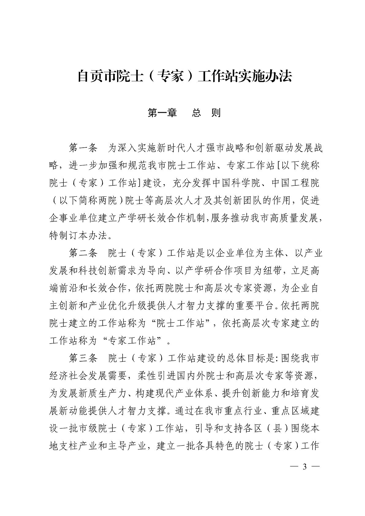 关于印发《自贡市院士(专家)工作站实施办法》的通 知
