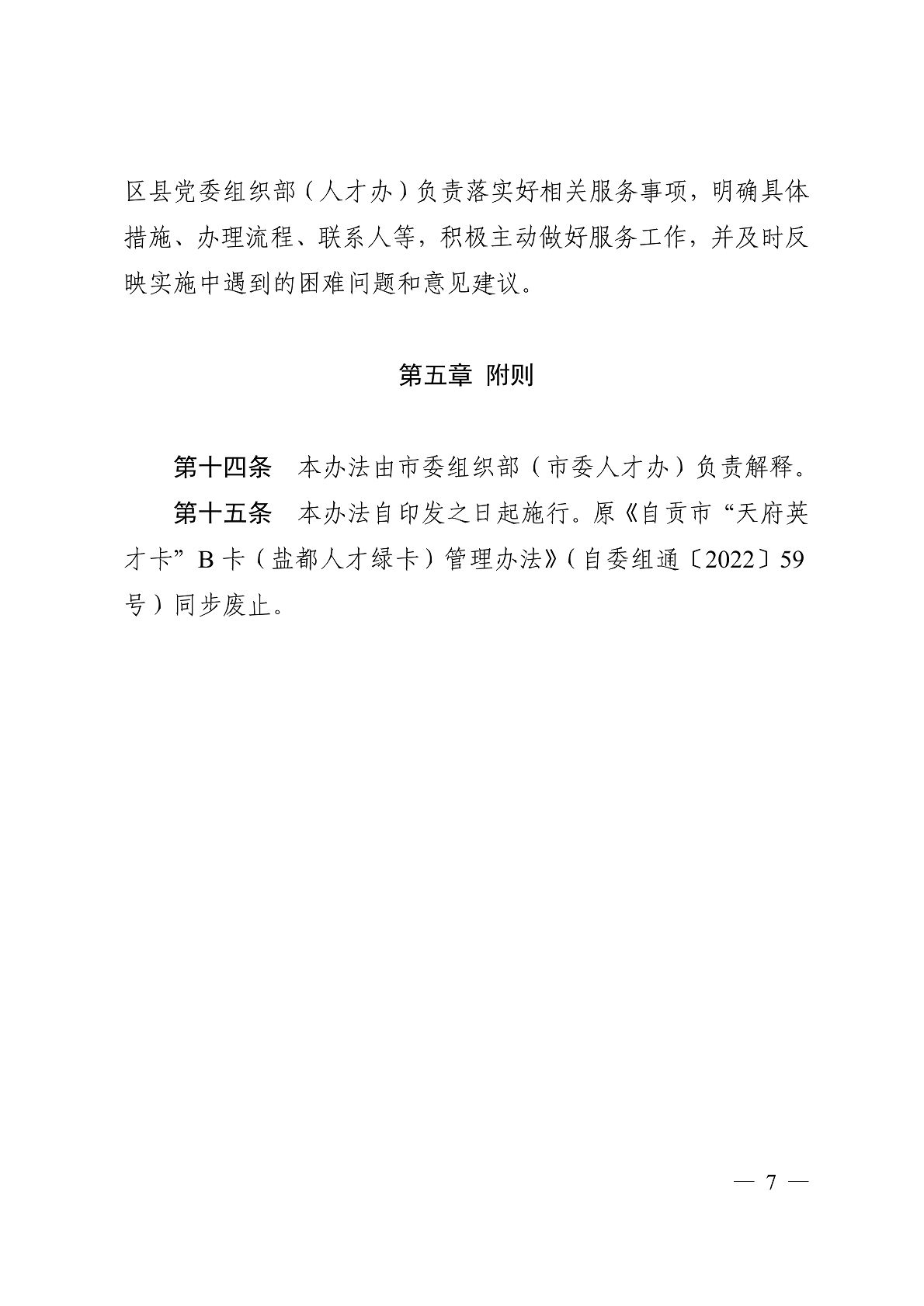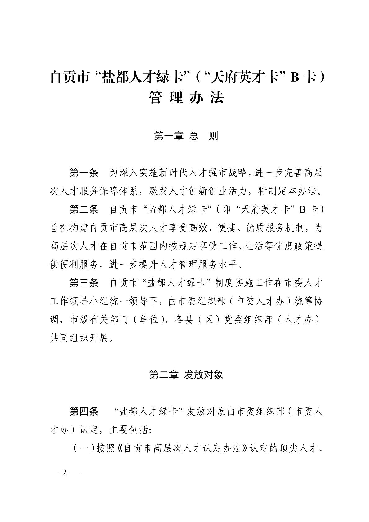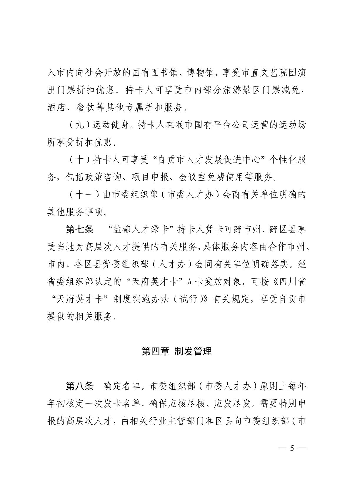 关于印发《自贡市“盐都人才绿卡”(“天府 英才卡”B卡)管理办法》的通知